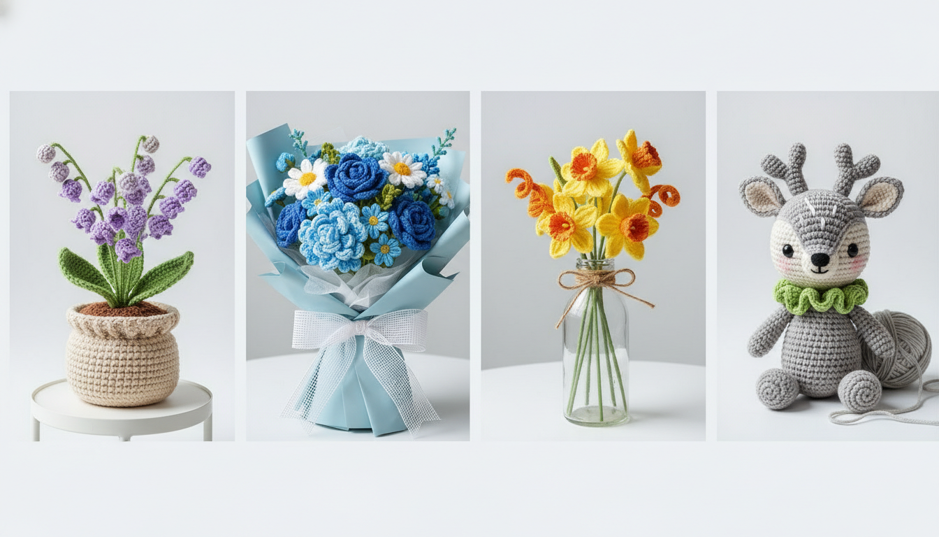 MIUSIE Complete Crochet Starter Kit: Potted Flower Plants with Video Tutorials