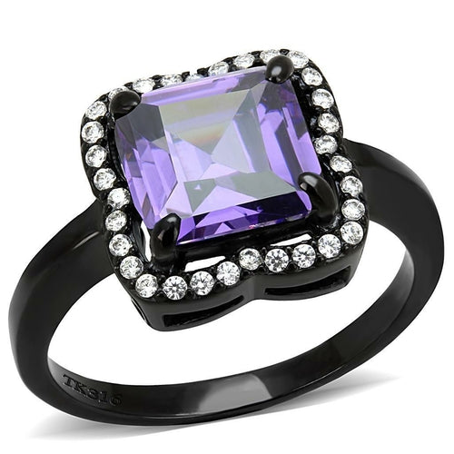 DA028 - IP Black(Ion Plating) Stainless Steel Ring with AAA Grade CZ