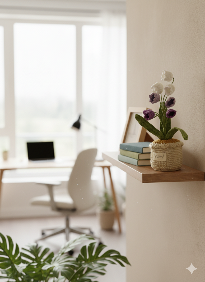 This unique piece offers all the visual appeal of fresh flowers without the need for watering, sunlight, or maintenance, making it the perfect evergreen addition to any space. It’s an ideal decorative accent for your desk, bookshelf, windowsill, or as a thoughtful, lasting gift for any occasion. Each stitch reflects careful craftsmanship, creating a timeless treasure that brings warmth and a touch of nature's beauty to your home or office.