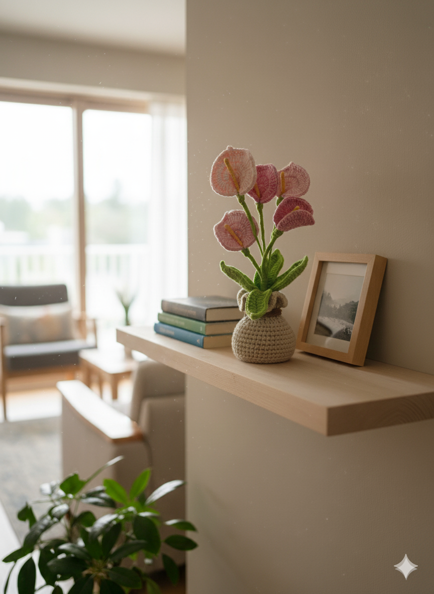 Handmade Crochet Pink Anthurium Potted Plant | Flamingo Flower Decor | Unique Tropical Gift