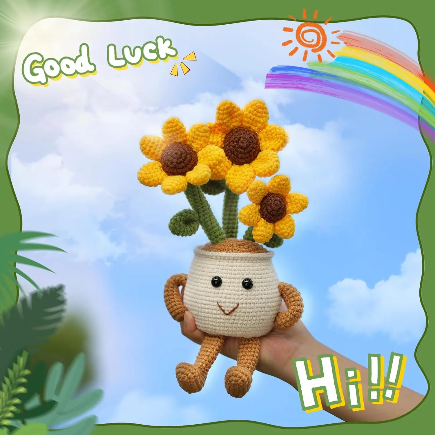 MIUSIE Crochet Starter Kit Sunflower Tulip Crochet Kit Crocheting Knitting Supplies for Adults Beginners Decoration DIY Craft